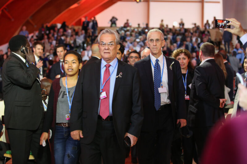 It is with great sadness that we bid farewell to Tony de Brum from the Marshall Islands, whose work on climate change on behalf of small island states was second to none. He was a central, indeed an historic figure, in securing the high level of ambition in the Paris Agreement.